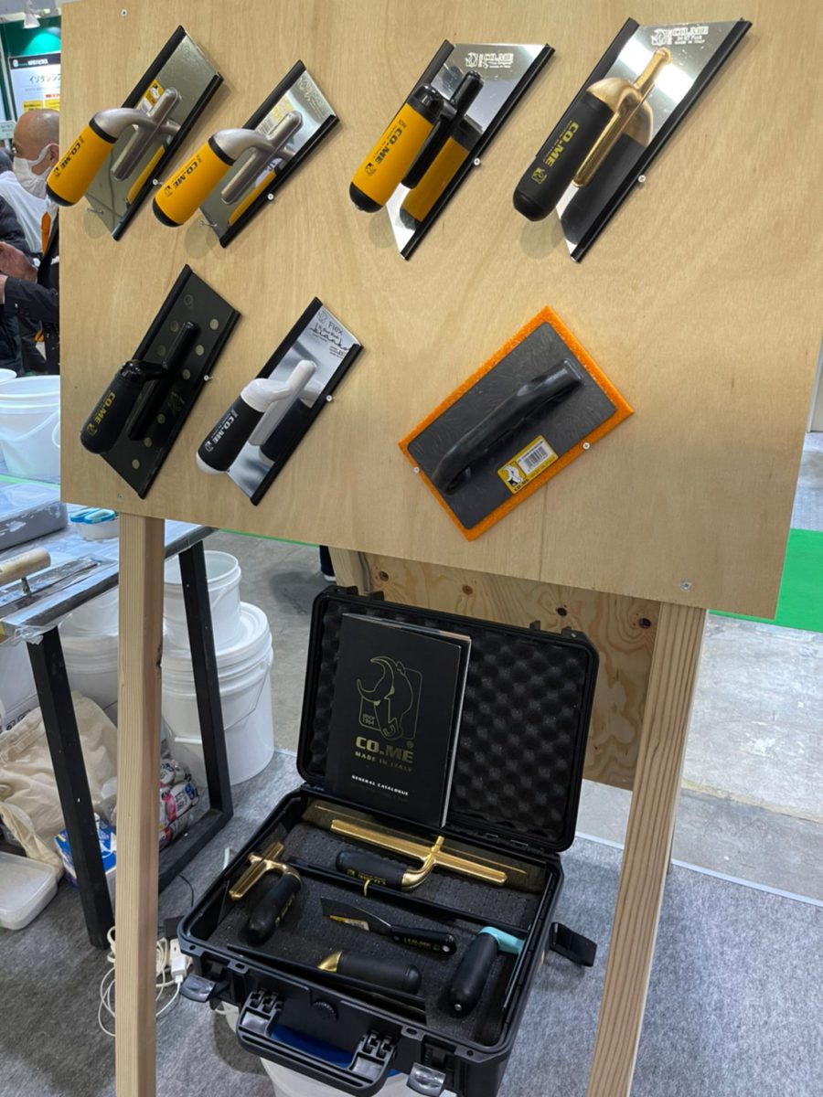 パネルに飾られていたイタリア磨き用のピカピカのコテ。