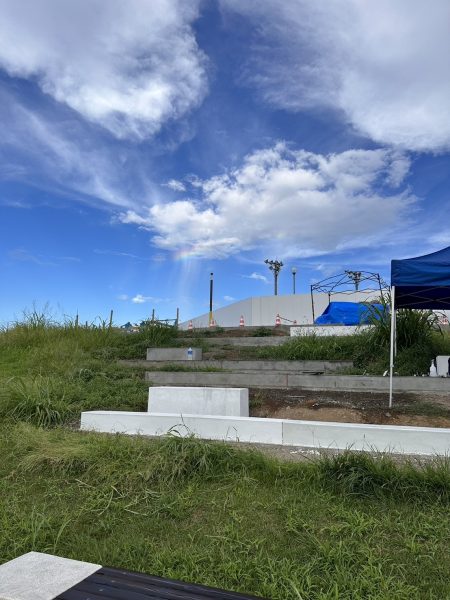 ↑左側の真っ白なベンチと右側はまだ施工中!