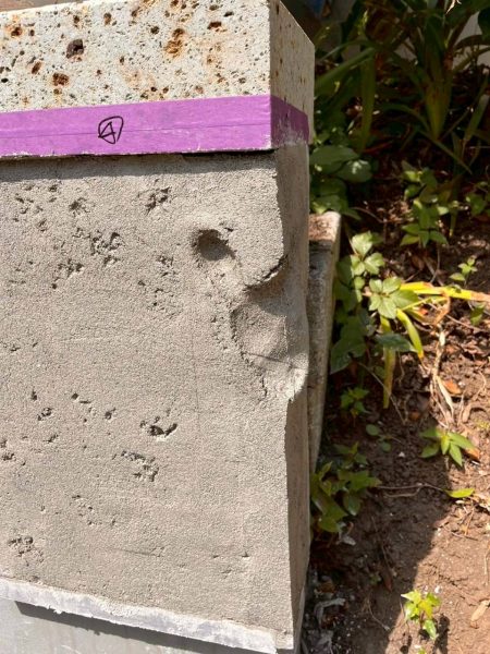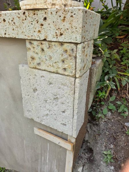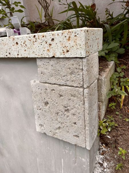 真新しい大谷石と、既存の劣化した物との間を狙って…