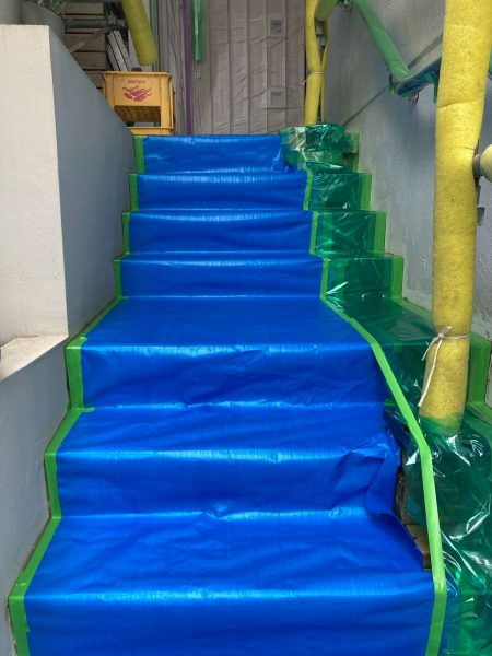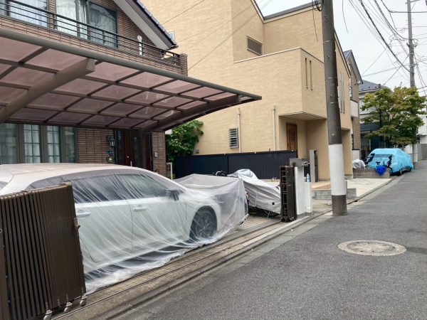 近隣への粉塵対策を徹底し、車両カバーも実施。