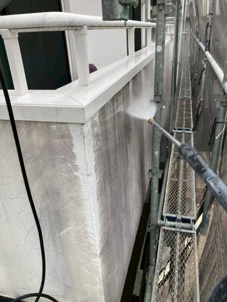 既存スイス漆喰の壁を徹底的に洗浄し、素地を清潔に。