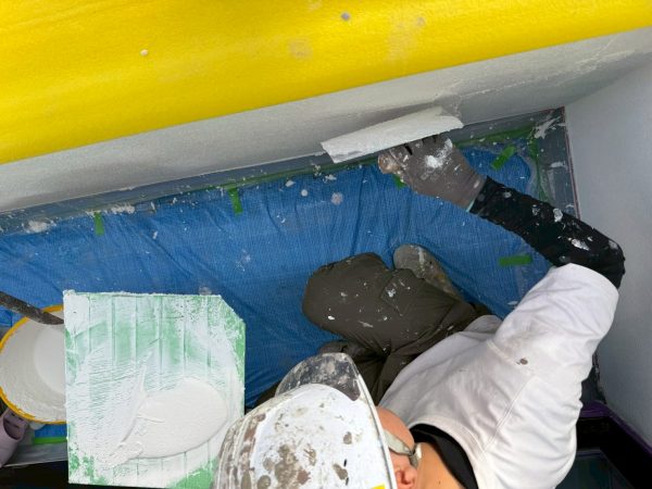 Sto専用ベースコートにメッシュを伏せ込み、ひび割れを予防。
