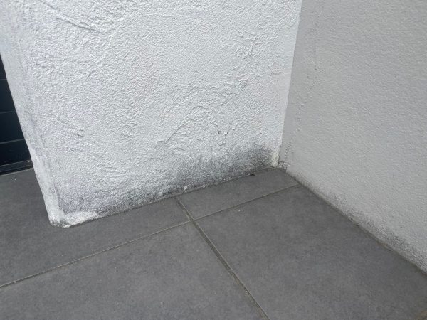 漆喰が溶けて白い粉が落ちる状態(とくに雨降りの後)