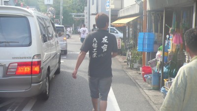 弊社で唯一の大型免許取得者!たそがれ左官の勇さんが運転してくれました。
