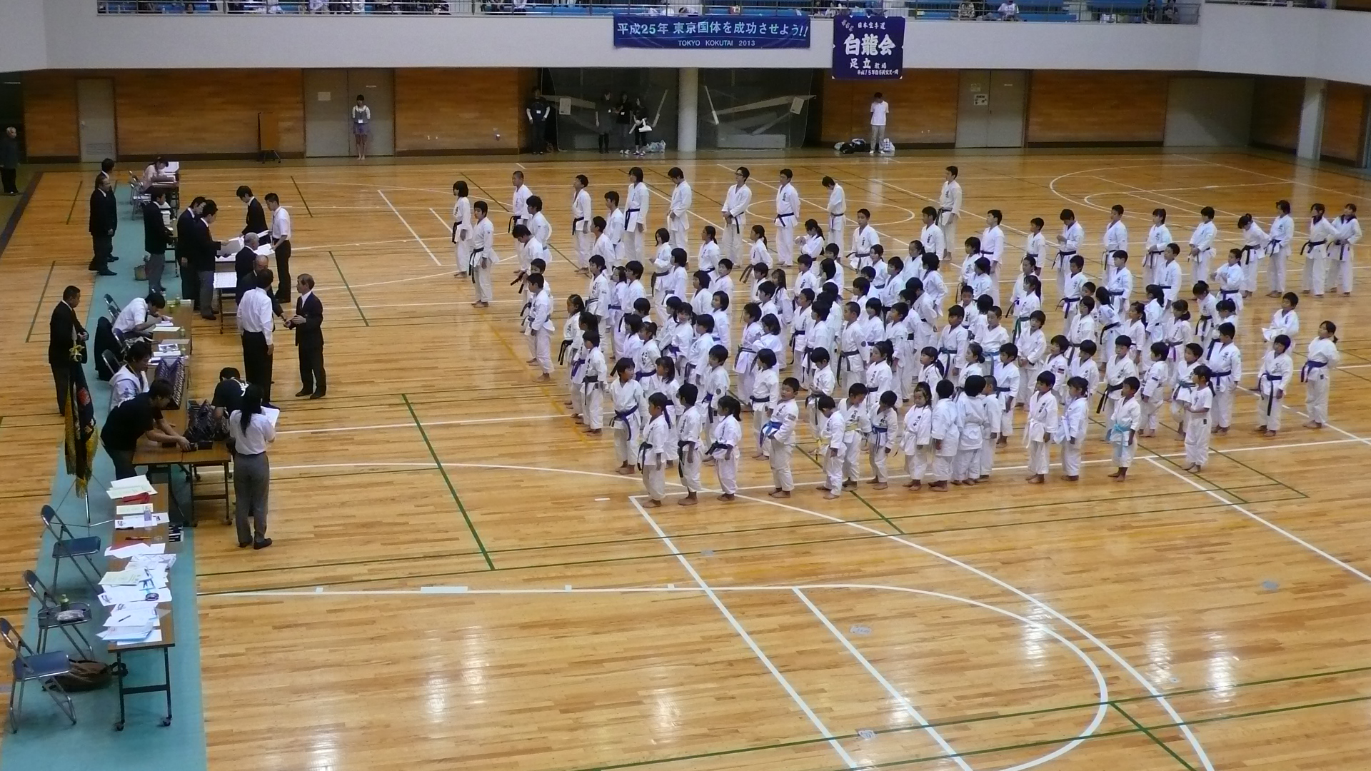 我が家の3人の息子たちは全員 『剛柔生道会』 という道場にお世話になっています(もう1年以上になります。)が今回大会に出場したのは長男だけとなりました。 それもほとんどの子が何カ月も前から大会に向けて一生懸命に練習しての出場ですが、 太晟にいたっては何週間か前に 「経験として出てみたらどうです?」てきな感じで先生に言われ半ば強制的にエントリー。 それからというもの どうせ出場するなら1回戦ぐらいは勝たせたいと思い、 ひそかに僕と一緒に自宅トレーニングを積んできた 太晟君でありました。