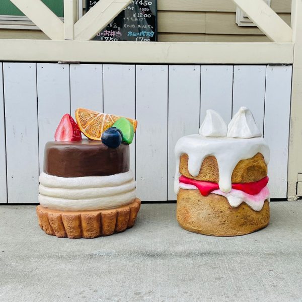 フルーツ、クリーム、スポンジ、クッキー生地…すべてモルタルでできています。